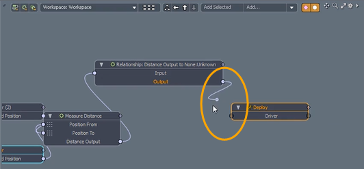 次の手順は、ロケーターを含むリギングを作成済みであることを前提としています。この例では、ドリブンアクションをスケマティクビューにドラッグアンドドロップして、 ロケーターアイテムアニメーションを更新します。
