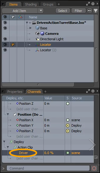 ドライバーチャネルは、アクションクリップアイテムのユーザーチャネルです。 グループビューポート彼らが所属する俳優の下で。パーセンテージタイプのユーザーチャネルは手動で追加でき、修飾子によってドライバーチャネルとして扱われます。他のタイプのユーザーチャネルは無視されます。チャネルタイプの詳細については、を参照してください。 ユーザーチャネルを追加。