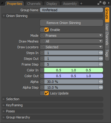 | 2. | プロパティでGroupsタブ、下Onion Skinning、クリックAssign Onion Skinning。 |
