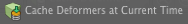 一度に1フレームずつタイムラインを再生して、デフォーマやメッシュ操作の結果のメッシュをキャッシュに取り込みます。右クリックして、 Cache Deformers at Current Timeオプション。 |