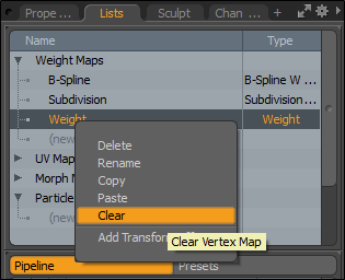 | 4. | パネルの下部で、 Listsタブ、展開Weight Maps、クリック(new map)。 |