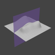 モディファイヤは入力メッシュをスライスし、スライスにレイキャストして表面の高さを抽出します。スライスの軸とオフセットを指定し、アニメーション化して、グラデーションの傾きを時間の経過に応じて変更できます。