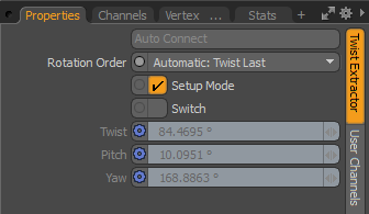 にSetupモードでは、Twist Extractorは回転値をジョイントの設定状態と比較し、その差を抽出します。