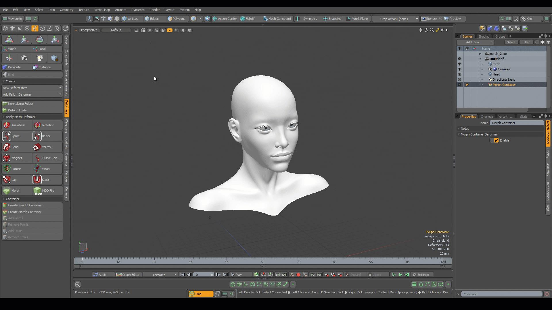 モーフコンテナの設定が完了したら、それに追加された頂点を編集できます。モーフコンテナを操作するには: