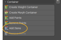 アイテムリストにモーフコンテナーを追加することもできます。 Add Item、次にAdd Itemダイアログ、下Items > Deformers 、[モーフコンテナ]をダブルクリックします。