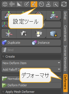 | 1. | クリックSetupツールバーボタンをクリックし、 Deformersサブタブ。 |