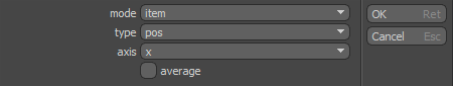 • Axis:この設定は、どの軸を指定するかModoあるアイテムから別のアイテムに一致します。指定できますX、 Y 、 Z 、またはAll。