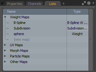 | 3. | 右側のパネルの下にあるItemsリスト、開くListsタブを展開し、 Weight Maps項目。 |