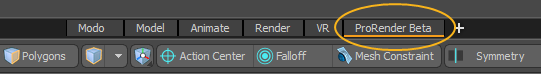 キットには専用ProRender BetaにアクセスできるレイアウトPViewビューポート。を開くにはProRender Beta レイアウト、クリックProRender Betaスイッチャーバーのタブ、またはメニューバーで、 Layout > Layouts > ProRender Beta