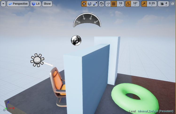 最初に、基本的なプリミティブと割り当てられたマテリアルを含むサンプルシーンをロードします。