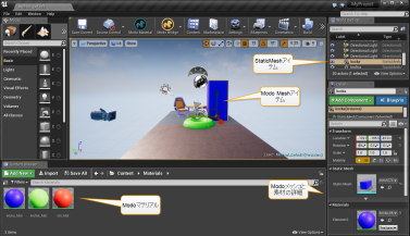 変換された静的メッシュをアンリアルからにプッシュするModo