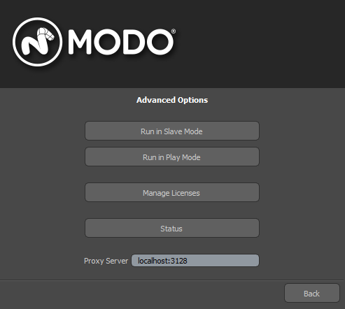 スレーブモードはネットワークのレンダリングと場所に関連していますModoその他の状態Modoインストールはレンダラーを制御できます。ネットワークレンダリングの設定方法については、 ネットワークレンダリングページ。