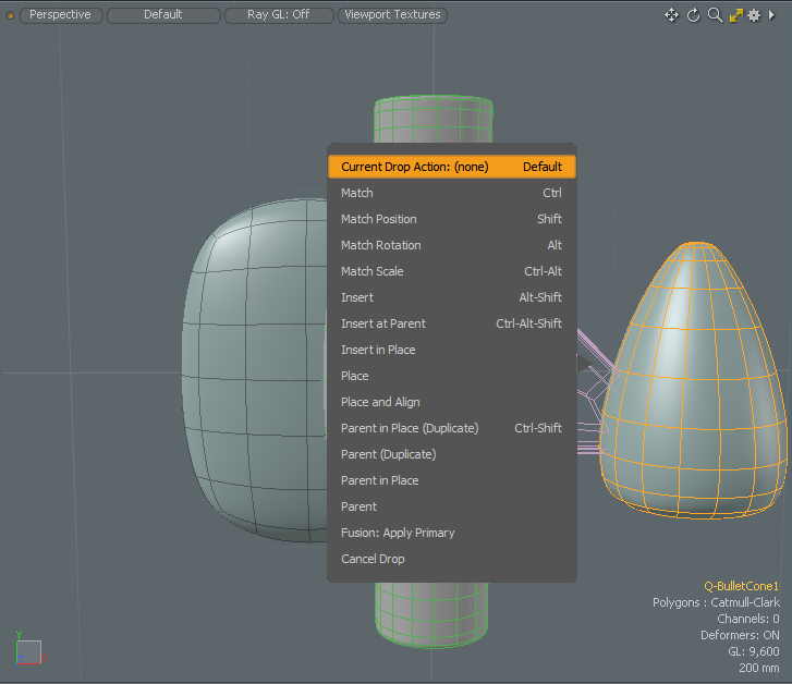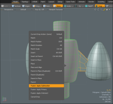 ドラッグアンドドロップのコンテキストメニューを使用して、Fusionモデルをすばやく構築します。これらのメニューは、 フュージョンアイテムあなたのシーンやその他のFusion Qbicプリセット。