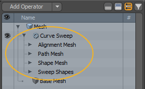 | 1. | クリックAdd...、以下Mesh Operations > Curves 、 ダブルクリックCurve Sweep。 |