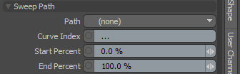 Mesh OperationsリストでCurve Sweepメッシュ操作を選択すると、右下のパネルにそのプロパティが開きます。
