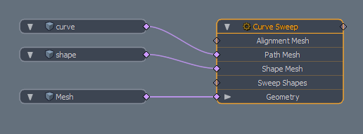| 3. | カーブメッシュをカーブスイープノードのPath Mesh入力、および形状メッシュをShape Mesh入力(個別の場合)。 |