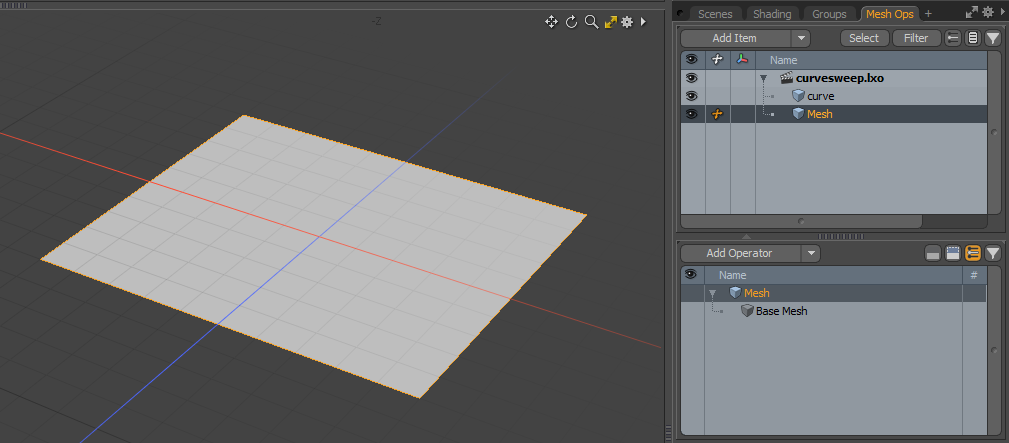 Curve Sweepメッシュ操作がMesh Operationsリストに追加されます。そして、そのプロパティが右下のパネルで開きます。
