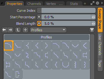 ジオメトリの使用に加えて、プロファイルプリセットの1つを使用して曲線に沿ってスイープできます。操作を追加して曲線を指定したら、次の手順に従います。