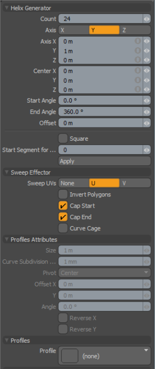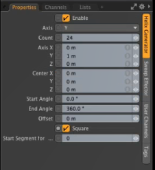 4.   の中にMesh Operationsリストから、 Radial Sweepアイテム、開くHelix Generatorタブ、および有効化Square