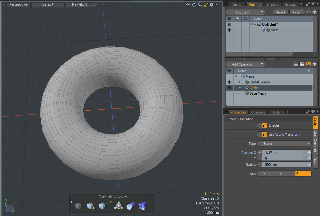 放射状スイープツールは、手続き型メッシュ操作としても使用できます。あなたはツールを見つけることができますMesh Opsタブ。の中にModelレイアウトでは、タブはインターフェースの右側の横にありますItem List
