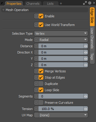 ツールのプロパティで適切なUVマップを選択することにより、スライドツールとUVマップのメッシュ操作を使用することもできます。