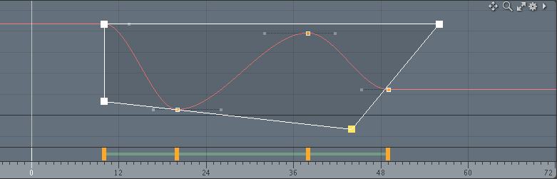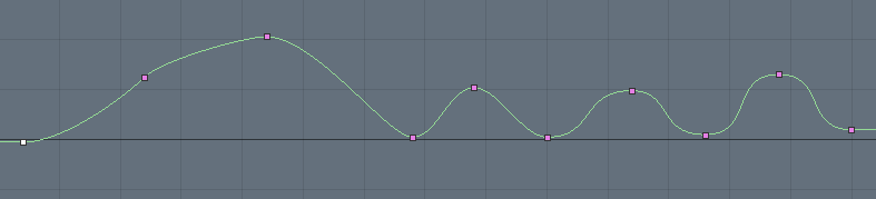 グラフエディターは、システムがこれらの中間のキー値をどのように補間するかを制御します。