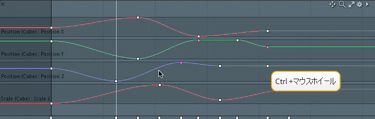 • Ctrl+背景を中クリックしてドラッグすると、 InputそしてOutput移動の初期方向に基づく、選択したキーの値。