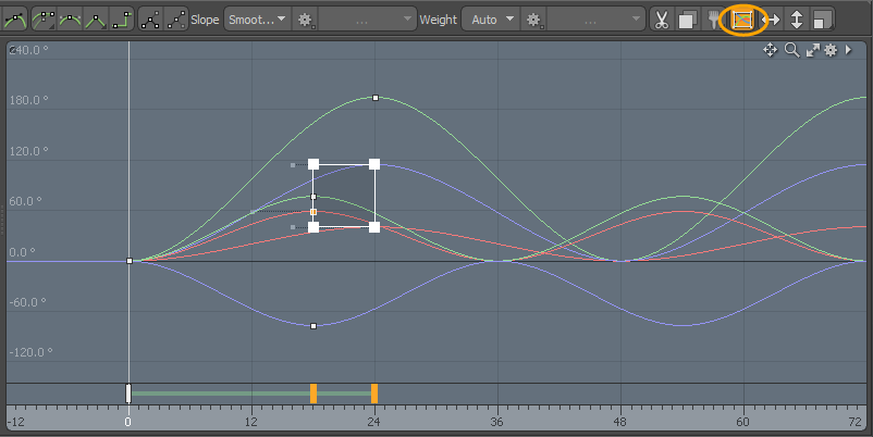 グラフエディターで複数のチャネルが選択されている場合、ビューは曲線に合わせてスケーリングされます。これらのカーブがアニメーション化される範囲に大きな違いがある場合、それらはビューポートで垂直に平らになり、編集が難しくなり、アニメーションの視覚化が難しくなります。