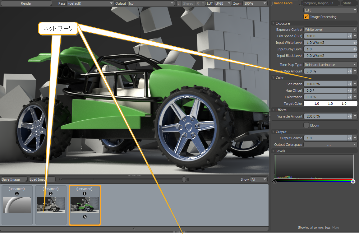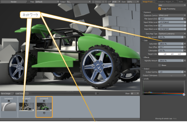 • Image Processing -レンダリングされたイメージを調整、修正、および調色するための非破壊的なコントロールを提供します。