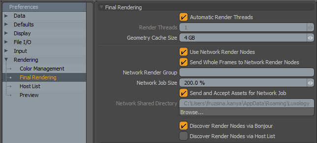もしDiscover Render Nodes via Host Listオプションが有効になっていますPreferences > Rendering > Final Renderingを使用して、スレーブシステムを手動でネットワークレンダー構成に追加できます。 Host List下の設定オプションPreferences > Rendering > Host List。