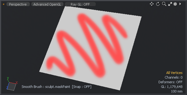 マスクスムーズツールは、既存のマスクを柔らかくするか、ぼかします。Modoブラシの先端に基づいてマスクをぼかします。このツールをインクのカスタマイズそしてタブレットノズルブラシストロークをカスタマイズするオプション。ツールがアクティブな間、3Dビューポートで右クリックしてドラッグすると、ブラシのサイズを設定できます。ターゲットサーフェス上をドラッグすると、マスクが柔らかくなり、ストロークを追加するたびに柔らかくなります。