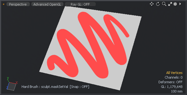 マスク設定値ツールは、定義された値をマスクに適用して、すべての既存の値を上書きします。このツールは、ハードエッジのソリッドストロークを作成します。Mask Set Valueツールとタブレットノズルブラシストロークをカスタマイズするオプション。ツールがアクティブな間、3Dビューポートで右クリックしてドラッグすると、ブラシのサイズを設定できます。ターゲットサーフェス上をドラッグすると、マスク値がターゲットサーフェスに適用されます。押すCtrl表面をなでる間、マスク値を削除して、マスク消去ツールのように動作します。