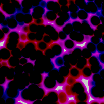 | 3. | 両方の組み合わせを作成するには、ノイズレイヤーのブレンドモードをAdd、しかしこれは画像3に示すようにクリッピングされた値を生成します。これは、計算により100%(75%+ 75%= 150%)を超える値が生成されますが、100%を超える値がない(つまり、完全に変位している)ため、値は100に切り捨てられるためです。 |