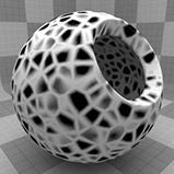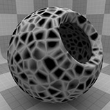 注意:  デフォルト設定では、 Cellularパターン内の色が明確に分かれているため、変位したりぶつかったりすると、平らなトップが生成されます。したがって、 Smooth Tops表面の外観にはほとんど影響しません。ただし、 Frequencies設定すると、表面が粗くなり、 Smooth Tops増加します。