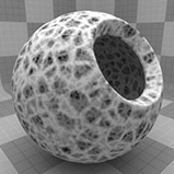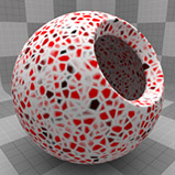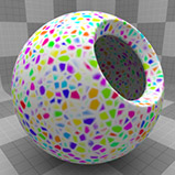 Round-テクスチャに基づいてランダムに配置された円形のスポットを作成します。デフォルト設定では、テクスチャは柔らかなエッジの重なり合ったドットのように見えます。設定を調整することで、カリフラワーや岩の欠けなどのエフェクトを作成できます。