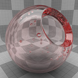 着色された透明な表面は、多くの場合、着色を示しません。薄い領域は無色に見え、厚い領域は色がかっています。のAbsorption Distanceこの効果を制御し、光線を100%取得するために光線が移動する距離を決定します。 Transparency Color。フォールオフは、実世界と同様に、ビールの法則によって決定されます。 |