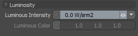 の明るさを駆動する乗数Luminous Colorそれが表面から放出されるとき。これはDiffuse Amountその拡散では、表面に当たるのにある程度の光が必要ですが、発光は表面自体から生じます。 発光面を光源として考えることは正確です-特に使用する場合Global Illumination。のLuminous Intensityに乗算されますLuminous Color。デフォルトでは、値はゼロであり、 Luminous Colorコントロールが無効になっています。 |