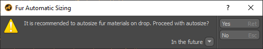 注意: ファー素材を選ぶときModo警告が表示され、マテリアルのサイズを自動設定するように求められます。