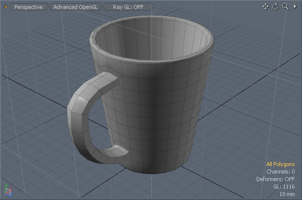 | 1. | ビューポートでマグから離れてクリックして、ポリゴンの選択を解除します。 |