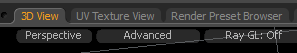 Camera > Render Camera カメラがジオメトリをどのように見ているかを正確に示す下部ペインのビュー、