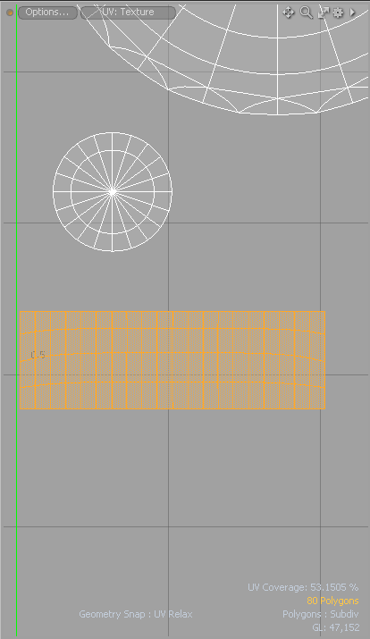 | 7. | ツールボックスで、 UV Mappingタブをクリックし、 Relax。 |