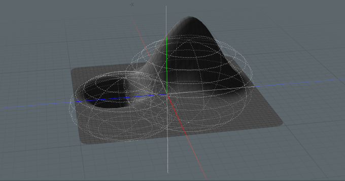 • アイテムまたはメッシュに対する他の影響の影響を弱めるため。たとえば、モデリングのフォールオフは、ツールがサーフェスに与える影響の量を制御できます。