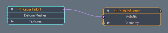 | 1. | フォールオフを追加するには、リストの[プッシュ影響]アイテムを展開して、 Falloff入力。 |