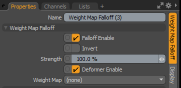 ウェイトマップフォールオフは、メッシュ操作に適用されるウェイトマップを評価します。評価するウェイトマップを選択できます。ウェイトマップは、メッシュへの影響範囲を定義します。ポリゴンベベルなどのメッシュ操作は、ウェイトマップのフォールオフを駆動します。のイージングプロパティ新しいフォールオフシェイプをすばやく作成できます。