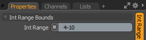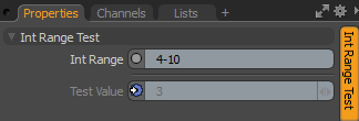 Int Range TestでProperties右側のパネルで、整数の範囲をInt Rangeフィールド。次のいずれかを入力できますTest Value、または別の修飾子を使用してこのチャネルを駆動します。以下の例では、チャネルはMinimum ValueInt Range Bounds修飾子。