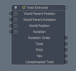 これにより、選択したジョイントのWorld PositionそしてWorld Rotationノードにチャネルを接続し、ツイストエクストラクタに接続します。 World PositionそしてRotationそれぞれチャンネル。