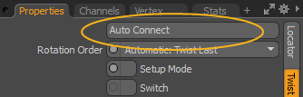 いつSetup Modeが無効になっている場合、これを使用して、選択したロケーターをTwist Extractorノードに接続できます。ロケータとツイストエクストラクタが選択されている状態でこのボタンをクリックすると、ロケータとツイストエクストラクタノード間の接続が自動的に設定されます。 注意: いつSetup Mode有効になっています、 Auto Connect利用できません。 |