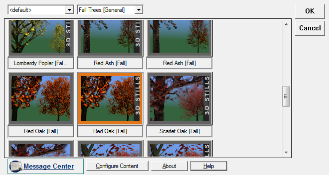を開きますRPC ThumbnailBrowser (下に示された)。ここでは、RPCアーカイブ内の要素を視覚的に選択してロードし、コンテンツを構成できます。 |