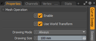 Mesh OperationsリストでCurve Sweepメッシュ操作を選択すると、右下のパネルにそのプロパティが開きます。