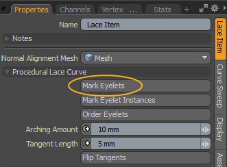 | 2. | レースアイテムのPropertiesパネル、クリックMark Eyelets。 |
